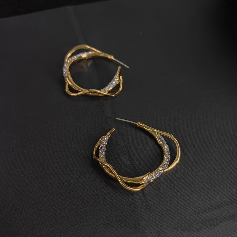 Material: Copper +3A zircon + electroplated two-color real gold +925 silver needle